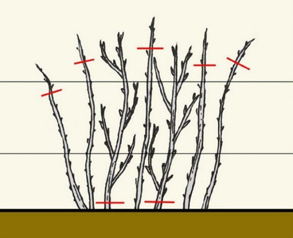 În acest moment, se taie toți lăstarii uscați, degerați, deteriorați și slab dezvoltați. Ramurile rămase sunt scurtate până la primul ochi sănătos. Acest lucru stimulează mugurii, din care apoi se formează 3-6 lăstari roditori cu lungimea de aproximativ 50 cm.