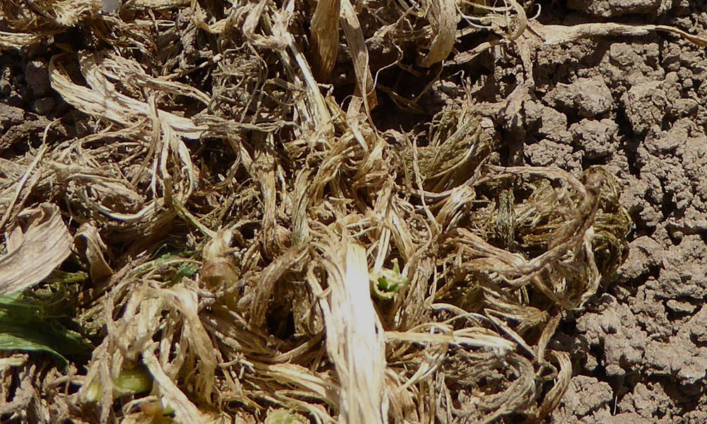Foto 4 – Solă de grâu atacată de larvele gândacului ghebos (Zabrus tenebrioides), atac sub formă de vetre